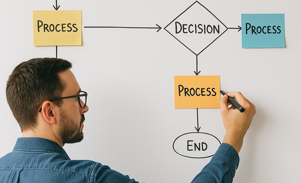 Like manufacturing, business processes follow a sequence of steps designed to achieve a goal. The goal may be onboarding a client, processing a loan application, fulfilling a customer order, or any other operational outcome. AI can be introduced at many of these steps to automate repetitive work, provide advanced tools, and enhance employee productivity. The challenge is deciding where to start.